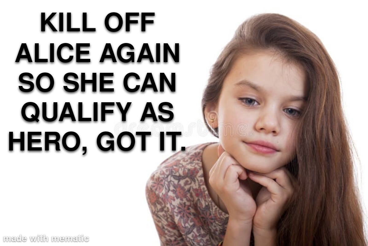 You can thank Alice for her contribution to your fate. Anything Alice plans will go the opposite way and have horrendous consequences.